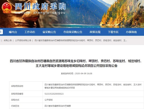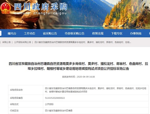 集團代理的“巴塘縣自然資源局”兩個采購項目,目前已經啟動,面向業界符合資格條件的供應商采用公開招標。