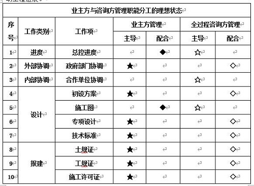 業主方與咨詢方管理職能分工的理想狀態