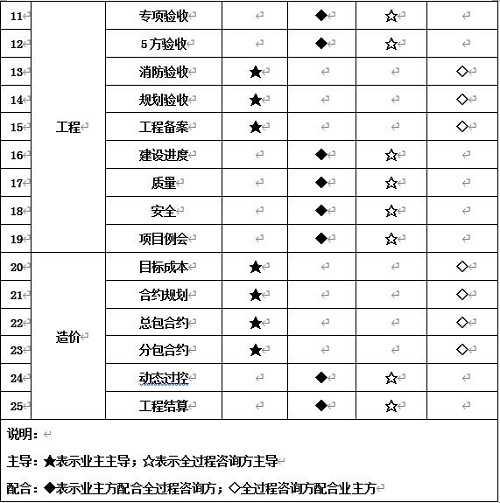主導:★表示業主主導;☆表示全過程咨詢方主導