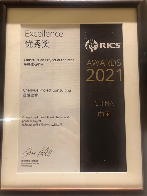 ?2021年6月25日,皇家特許測量師學會(RICS)中國峰會2021暨RICS中國獎頒獎典禮在上海召開,晨越多項目獲獎。其中,成都軌道交通六號線一、二期工程獲得年度建造項目優秀獎。