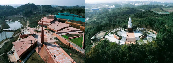 江姐故里紅色教育基地是踐行習近平總書記“用好紅色資源、賡續紅色血脈”重要講話精神,落實四川省委、省政府部署要求的重點工程項目,規劃總面積約990畝,一期實施面積415畝,新建建筑面積1.26萬平方米,山體景觀梳理3.1萬平方米,水體整治5.4萬平方米。項目主要由江姐故居提升改造、新建江姐文化藝術中心、新建園區紅色教育基地三部分組成,包括4棟單體建筑,包括游客中心、演藝廳、展覽館2棟、江姐漢白玉雕塑等內容,這是一個具有重要意義的紅色地標項目。